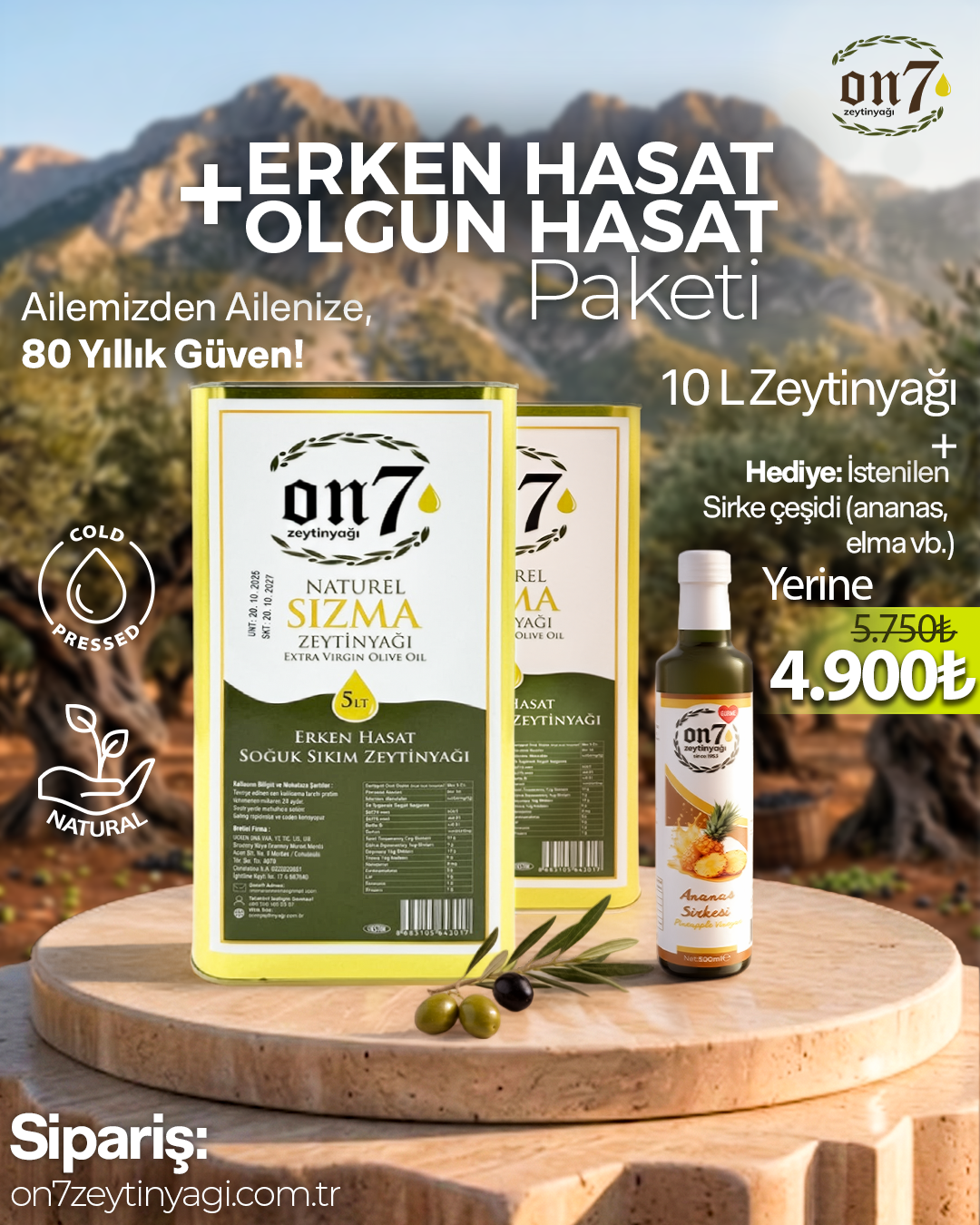 “Salatalarımda erken hasadın o taze çimen kokusunu, sıcak yemeklerimde ise olgun hasadın yumuşak ve dengeli lezzetini istiyorum” diyenler için mükemmel bir karma paket hazırladık! Ailemizin 80 yıllık tecrübesiyle, zeytinyağının her iki şahane halini bir araya getirdik. Tamamen doğal ve Soğuk Sıkım olan On7 zeytinyağları, mutfağınızın baş kahramanı olacak.